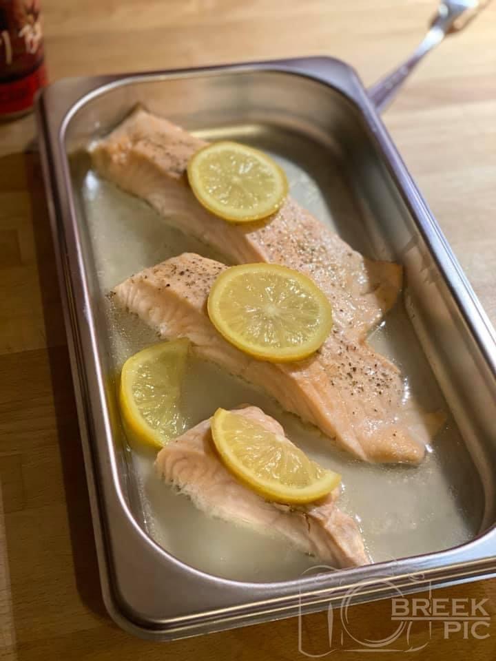 Filet de saumon, jardinière de légumes, pommes de terre et sauce aux échalotes